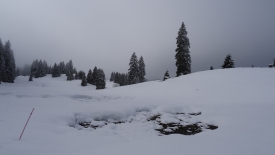 Nous avons profité d’un piquet, au trois quarts enseveli sous la neige.