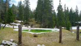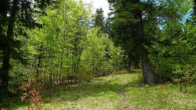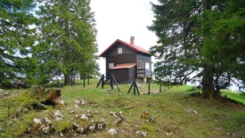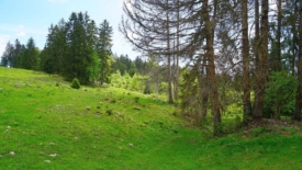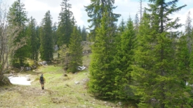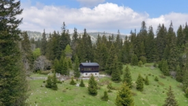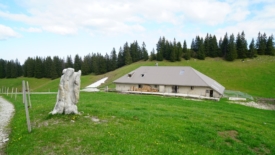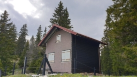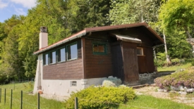 Et c’est ainsi que, ayant quitté le sentier, et recherchant un accès au pâturage de La Baragne, nous arrivons dans une clairière où trône un chalet privé.