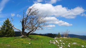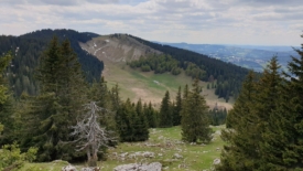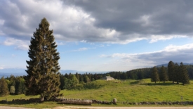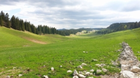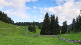 Arrivés là, nous avons l’option de descendre dans le pâturage et de le suivre en direction Des Begnignes ou de suivre la route qui longe le pâturage, derrière la crête nord.