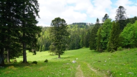 Un joli sentier nous ramène vers le pâturage du Couchant.