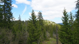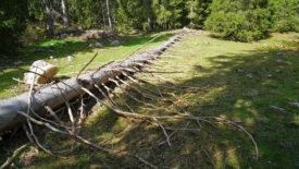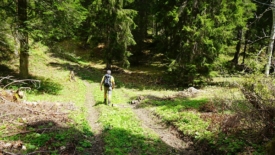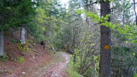 Arrivés au croisement qui mène soit au chalet Grande Enne soit au chalet Les Pralets, nous optons pour Les Pralets même si nous savons pertinemment que le sentier a été massacré par les engins d’exploitation forestière. Effectivement, deux grosses ornières défigurent le sentier, ornières boueuses et souvent remplies d’eau, où des branches éparpillées et laissées à l’abandon compliquent encore un peu plus la marche.