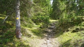 Marchant allègrement, nous nous remémorons une balade, faite en fin d’hiver, où nous avions suivi un moment cette route, mais où les plaques de neige, encore nombreuses et profondes, nous avaient forcés à rebrousser chemin.