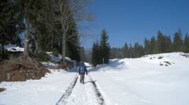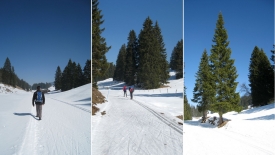 Par conséquent, les chemin que nous empruntons est fraîchement damé, et cela facilite grandement notre progression. Nous marchons sur les côtés afin de laisser un maximum de place aux skieurs. D’ailleurs, personne ne râle parce que nous marchons sur la piste.