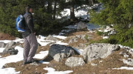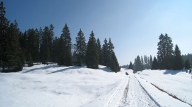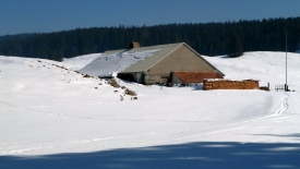 Nous nous arrêtons sur le replat entre la Dunanche et la Pessette, car trop de neige encombre le chemin. Bon il faut dire aussi qu’avec ma voiture sportive, je touche le bas de caisse avec 5 cm de neige …