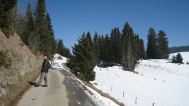 Après le Bugnonet, nous trouvons de la neige et du verglas sur la route.