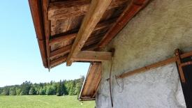 Vieilles poutres et vieille faux pour faucher les foins.