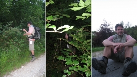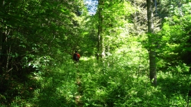 Après avoir passé la clairière, à 3/4 du parcours environ, nous marchons dans les hautes herbes en file indienne (la file est certes courte car nous ne sommes que deux) et par moments les orties me caressent gentiment les mollets …