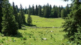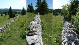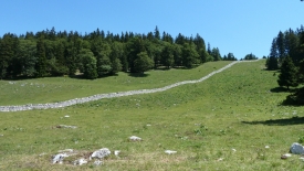 Les Croisettes, c’est un immense pâturage avec un joli mur en pierre sèche …