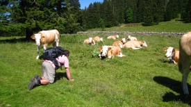 C’est ici où j’essaye de me lier d’amitié avec une vache, en me mettant à son niveau …