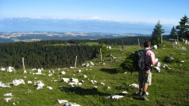 En route pour La Blondine, avec la Dent du Vaulion au loin.
