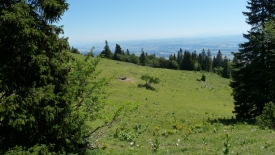 Début de la descente, en prenant le sentier (officiel) qui coupe tout droit par le pré.