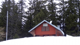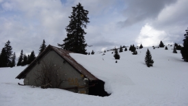 Nous rejoignons nos traces et arrivons au chalet des Monts de Bière Derrière.