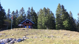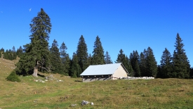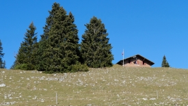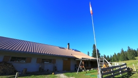 Nous arrivons aux Monts de Bière Derrière. Il n’y a plus de bétail mais le chalet semble encore occupé.
