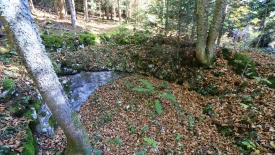 Nous partons d’un bon pas, face à la pente. Direction : un très ancien pâturage, disparu aujourd’hui, appelé Sous la Roche. À proximité, les vestiges d’un site verrier et de l’ancien chalet d’alpage.