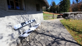 Difficile de croire que les vaches ne sont plus là et que le chalet est fermé pour l’hiver… Olivier ne doit pas être très loin.