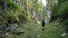 Nous sommes maintenant dans la montée vers la Dent de Vaulion. Un coupe de bois nous empêche de poursuivre sur le sentier. Les responsables annoncent une déviation… qui n’est pas indiquée ! Nous errons donc un peu et tombons sur un refuge du CAS (sous-section de Morges), dit de la Cabane d’Orny II.