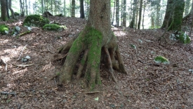De là, nous coupons directement et franchement dans la forêt, face à pente. Nous évitons ainsi les travaux et rejoignons la route qui mène au Chalet de la Dent de Vaulion.
