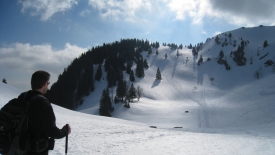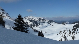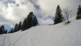 A moins d’avoir une jambe plus courte que l’autre ou d’être un dahu, la marche en raquettes rend difficile toute approche en dévers… Nous faisons quelques détours (ou bords si vous préférez) pour attaquer la pente de face.