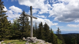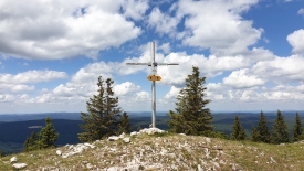 A notre grande surprise, le sentier arrive juste derrière la croix du Noirmont. Chic, nous avons découvert une nouvelle route !