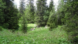 Le pré de l’Arzière. Le sentier que l’on voit est celui qui monte vers le chalet du Croue.