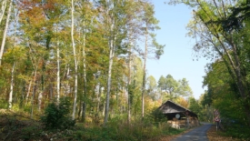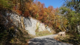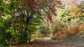 La forêt s’assombrit. Nous préférons rester sur la piste forestière puis la route plutôt que de partir sur un sentier.
