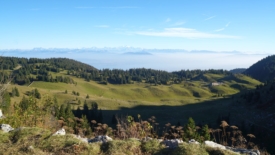 Nous arrivons au Col de Porte. Nous nous installons sur un banc. Une famille nous rejoint. Deux adultes, 2 enfants, le plus grand d’environ 3 ans, le petit marchant à peine. Le grand parle suisse-allemand à sa mère, espagnol à son père et nous parle en français. Wow… Voilà un petit qui part dans la vie avec de sacrés atouts.