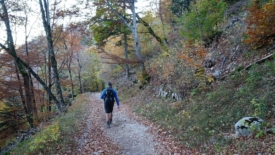 Il faut beau et tiède. Sans vent, lorsque le soleil est franc, il fait même presque chaud. Stefano est en tee-shirt. Moi j’ai quand même les bras couverts. Les couleurs d’automne sont magnifiques.