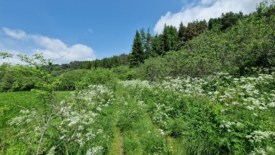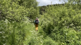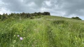 Nous longeons d’ailleurs la limite des arbres, sur le côté est. Le sentier est presque absorbé par les hautes herbes.