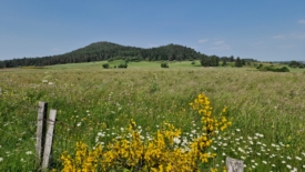 Partis sous les nuages, nous traversons la narse d’Espinasse, une zone marécageuse située au pied du puy de l’Enfer. Puis, la météo s’améliorant, nous poussons jusqu’au puy de Monténard qui offre un sommet dégagé et ouvert, avec un magnifique panorama sur la chaîne des Puys, les monts Dores, et le massif du Sancy.