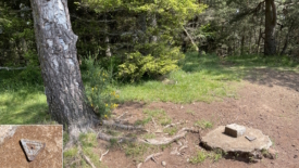 Un panneau vert à demi enfoui dans les herbes marque une intersection de sentier et invite le randonneur intrépide – la trace est à peine perceptible – à découvrir la narse.
