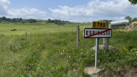 Un petit coup d’œil au GPS confirme que le sentier existe bel et bien sur une carte – c’est une bonne chose – et qu’il coupe plus loin le chemin que nous avons parcouru hier, à la sortie d’Espinasse. Sans plus réfléchir, nous nous y engageons.