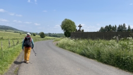 Nous rejoignons le chemin de l’Enfer, accueillis par une croix.