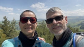 Comme promis sur la page où Stefano a trouvé le tracé, le sommet est effectivement dégagé, au moins sur le côté sud. Et nous avons une belle perspective sur la chaîne de Sancy, même si le ciel est encore un peu brumeux.