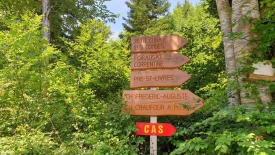 Trois personnes sont attablées sur la terrasse, terminant leur repas. Nous échangeons quelques mots et ils nous confirment que des travaux ont bien eu lieu au chalet de M’sieur Claude, justifiant ainsi que ce dernier n’est pas pu s’y installer pour l’été.