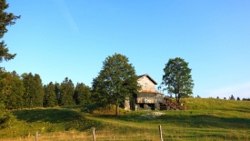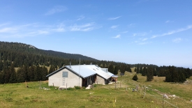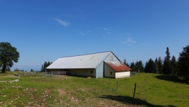Bien nous en prend. Alors que nous ouvrons-fermons une barrière, le berger nous entend et sort nous saluer. Nous faisons enfin sa connaissance. Il surveille 254 bêtes, des génisses et des vaches allaitantes. Le chalet est géré par le syndicat de Montrichier, qui gère également la buvette du Mont Tendre (enfin, si j’ai bien compris). Il nous confirme ce que les plaques minéralogiques de sa voiture nous avaient fait deviner : son pays d’origine est la Roumanie. Nous le quittons en nous disant : quel gars bonnard !