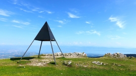 Nous avalons (c’est le mot !) 5 décis de jus de pomme à la buvette du Mont Tendre. Les tables sont envahies par les guêpes. Nous ne traînons pas et partons vers le point géodésique.