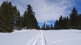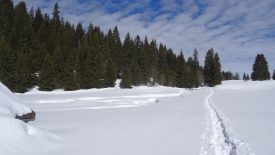 Très vite nous arrivons sur le Pré de Rolle. Nous y laissons nos traces. Seules quelques bichettes nous ont précédés.