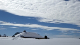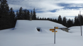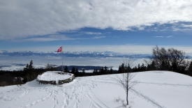 Lorsque Stefano me demande de choisir entre la préparation de la déclaration d’impôt suisse ou une balade en raquettes, je n’hésite même pas un millième de seconde. La TSH Mobile est chargée en deux temps et trois mouvements et nous voici partis en direction du Marchairuz. Les prés de Marchissy et de Longirod sont recouverts de neige. En sortant de Marchissy, nous crevons le brouillard et trouvons le ciel bleu. Les deux pistes de ski de St-George sont ouvertes et la piste de luge de la St-George est prise d’assaut. Les augures sont excellentes.