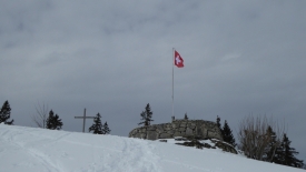 Au pied de la croix au Crêt de la Neuve. Ne me demandez pas pourquoi je lève la tête… Non je ne fais pas la fière.