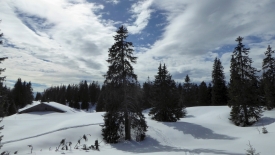 Comme aujourd’hui il n’y a pas de sandwichs (le départ fût un peu précipité), nous nous contentons de thé et d’une barre. Avant de nous refroidir complètement, nous repartons en direction de la Perroudaz.