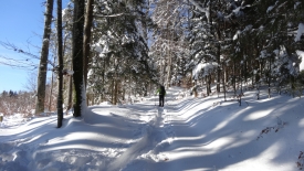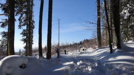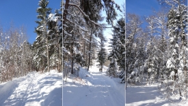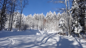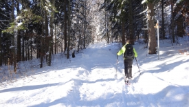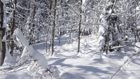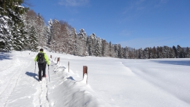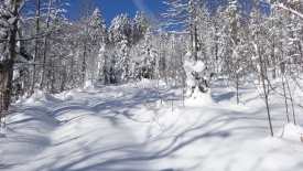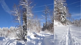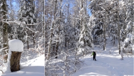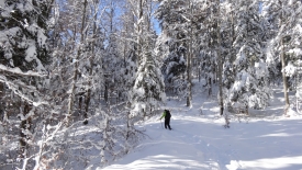 Mais, nous ne suivrons quand même pas le même chemin qu’hier… Nous commençons direct par le Sentier du Coq. Fi du plaisir de faire notre trace… Nous profitons avec délice des traces d’autrui.