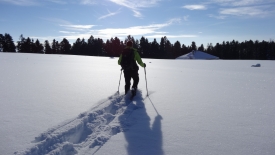 Nous rejoignons pour une centaine de mètre nos traces d’hier, menant aux Prés de Joux.