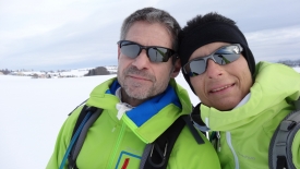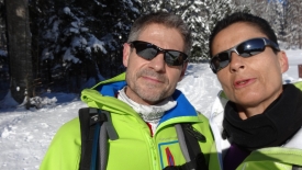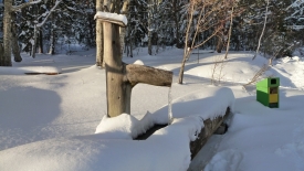 Stefano en profite pour faire une petite escapade à la fontaine. Mais sans raquettes, il revient avec les chaussures trempées. Mais la photo en valait la peine.
