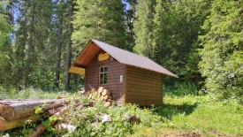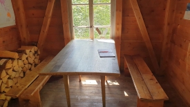 Nous arrivons au refuge de La Barre, au bois bien rangé.