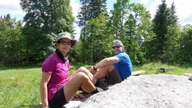 En remontant sur la route, nous trouvons 3 jeunes gars en train de pique niquer. Parti de Montbéliard (Doubs), ils rejoignent Culoz (Ain) par l’itinéraire de la Grande Traversée du Jura.