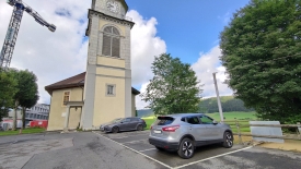 Un petit couvert, juste après avoir dépassé une grosse bâtisse Les Grandes Roches, une colonie de vacances, fermée pour cause de Covid.