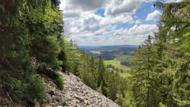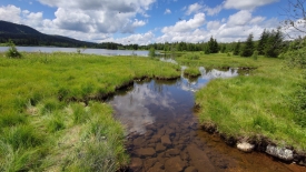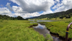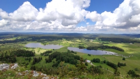 De là, nous avons un magnifique panorama sur deux petits lacs, à gauche le lac de Bellefontaine et à droite le lac des Mortes.