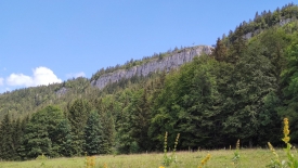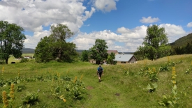 Au pied de la pente, un pré où le bétail n’est pas venu depuis longtemps, si on en juge par la hauteur des herbes.