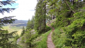 Le sommet est pris d’assaut. Des parents s’amusent à se faire peur en laissant leur bambin de deux ans courir tout près du bord. Nous ne restons pas et descendons en direction du chalet Capt où nous espérons bien pouvoir – enfin – pique-niquer.