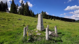 En arrivant à La Thomassette, nous ne pouvons ignorer un monument, isolé par des fils électriques, au milieu d’un pré.